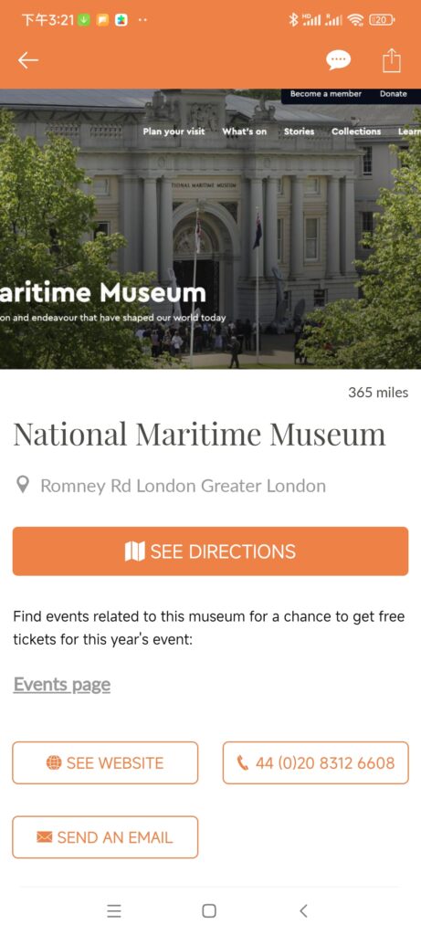 You can find five Marine or wreck museums around the UK in the map of Museums section of the App. Clicking on each specific site will bring you to the specific museum’s introduction page, including contact information, as well as a direct link to the museum’s official website, so that users can plan a site visit while learning about the wreck.