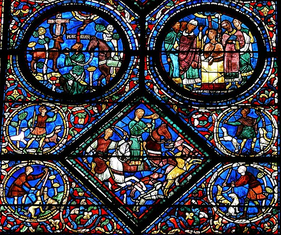 Several workshops of master glassmakers practiced and refined these techniques, developing their unique marks of style. Differences in technique can give clues to recognizing between artisan’s styles, or to tell if the whole piece was done by the same one. There were probably a dozen artisans who participated in the work present at Chartres.
