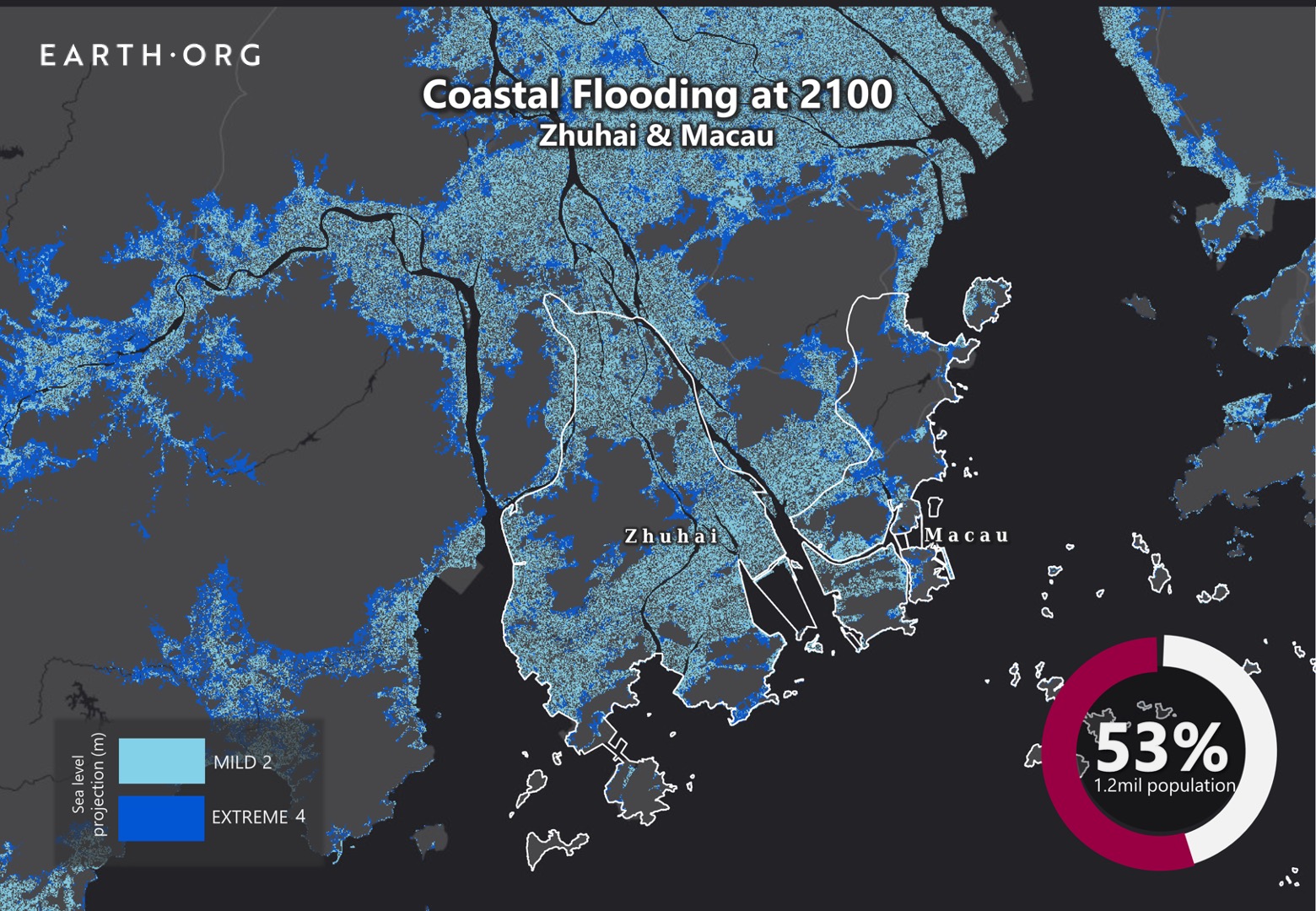 - Graphs depict the historical and predicted rise in sea levels affecting Macao.