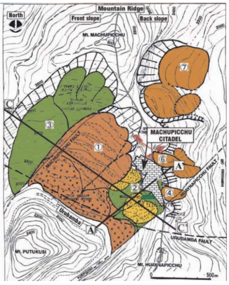 Landslides and potential landslides around the Machu Picchu Citadel (Sassa