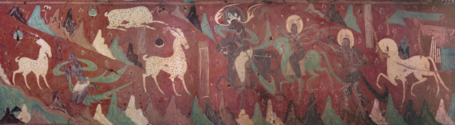 image 6: Available: https://commons.wikimedia.org/wiki/File:Deer_King_Jataka_painting,_Mogao_Cave_257_west_wall_center.png 敦煌研究院, CC BY-SA 4.0 https://creativecommons.org/licenses/by-sa/4.0, via Wikimedia Commons, no modification.