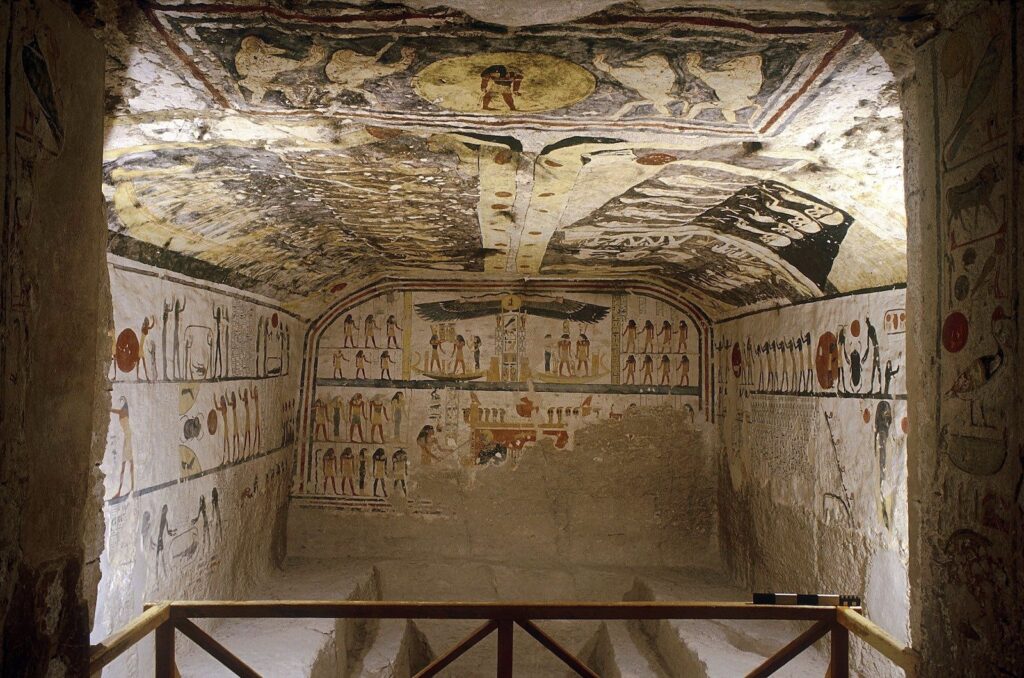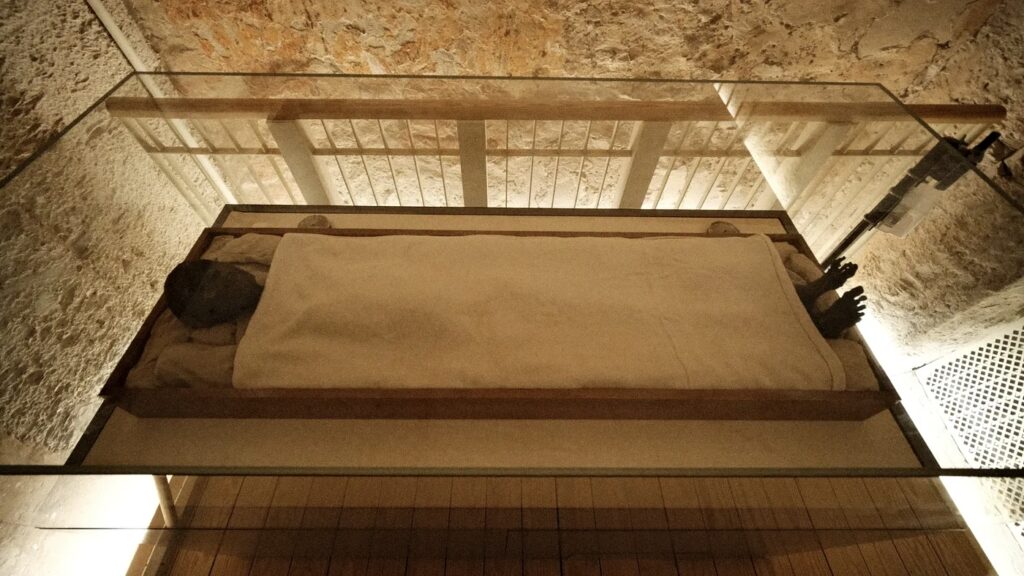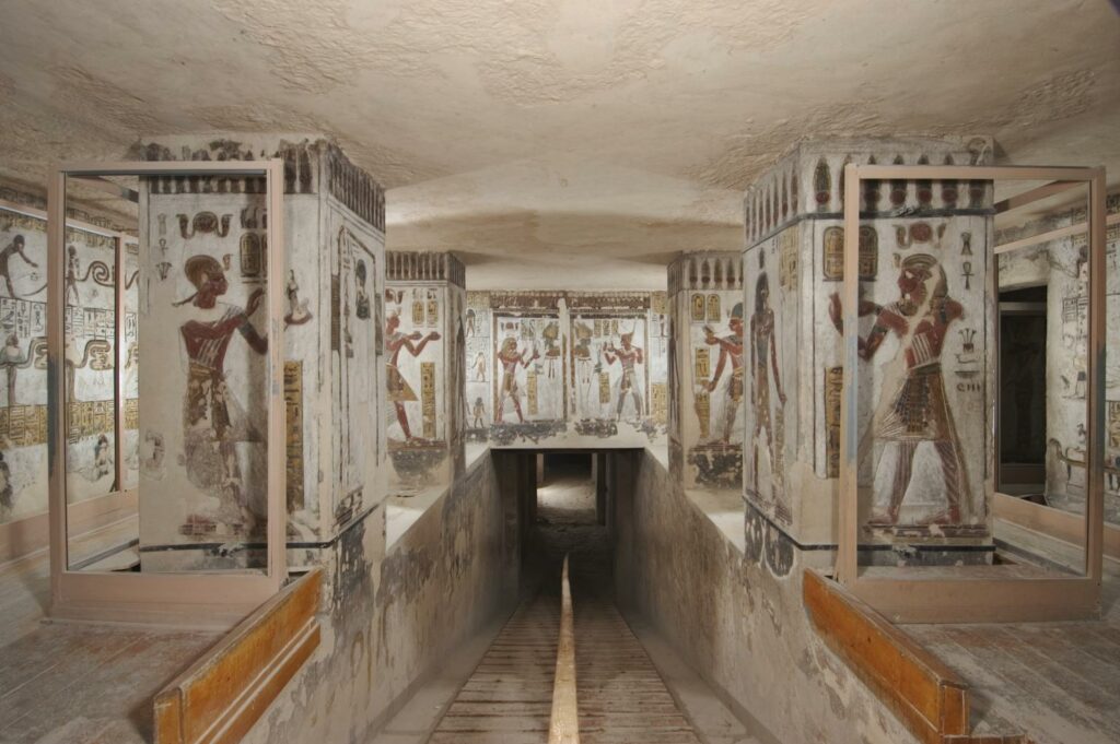 The image shows KV62, the tomb of Tutankhamun, the only pharaoh whose mummy remains in the Valley of the Kings tomb chamber.2