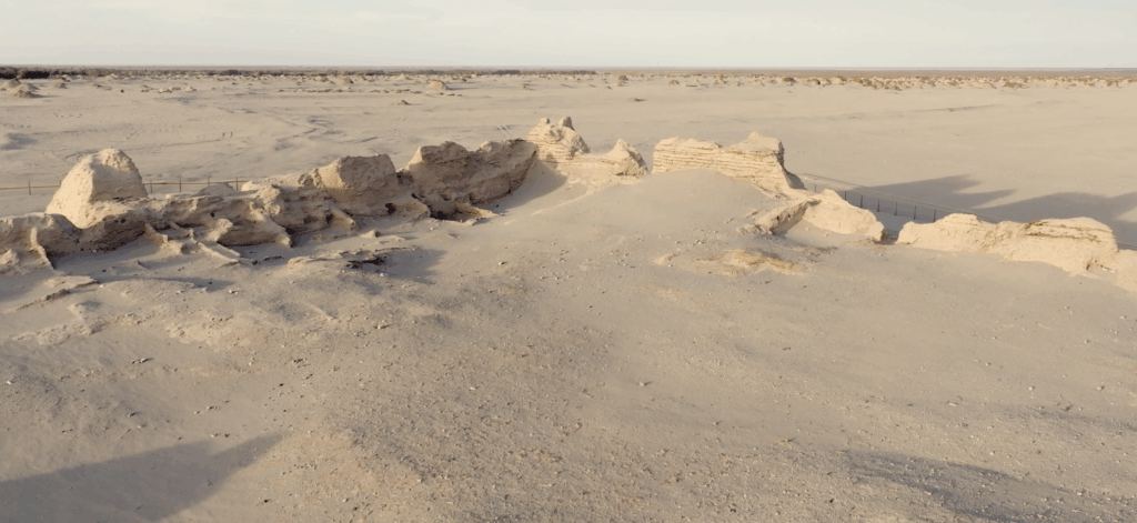 Originally a fertile oasis nourished by the Tarim and Peacock Rivers [6], Loulan’s abundance was gradually lost due to climatic shifts, diminished water resources, and human activities [7], causing it to be swallowed by the shifting sands and abandoned by the 4th century CE as a “dead city” [8].